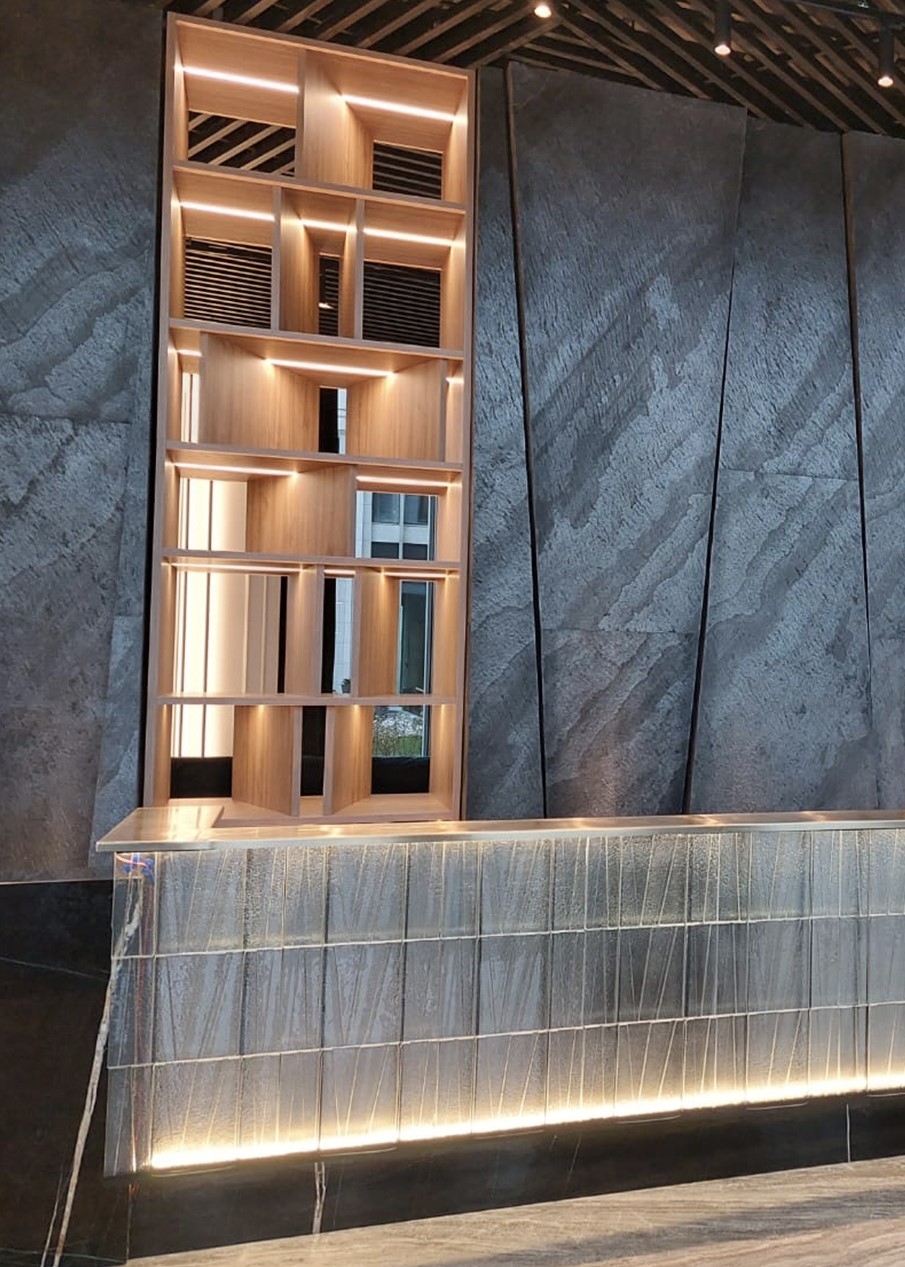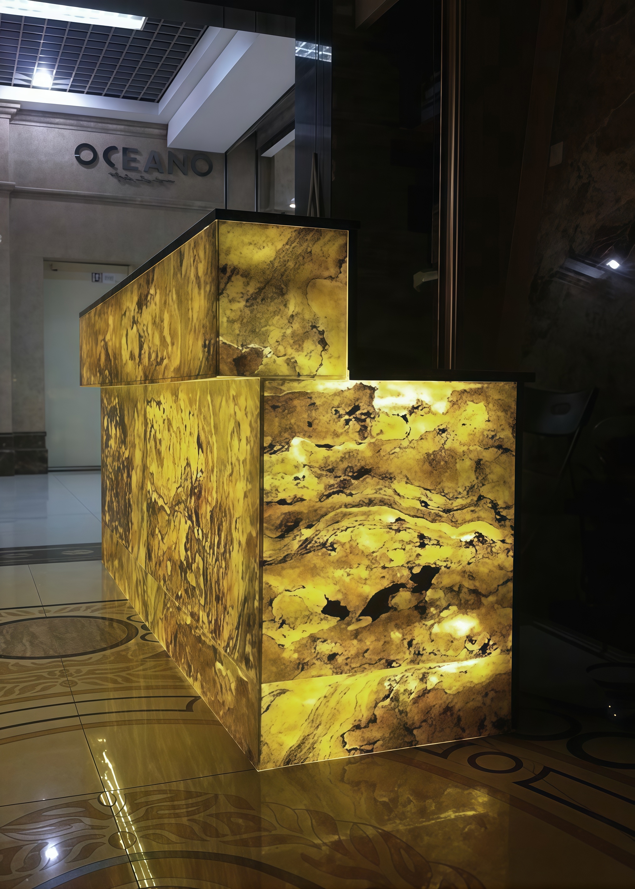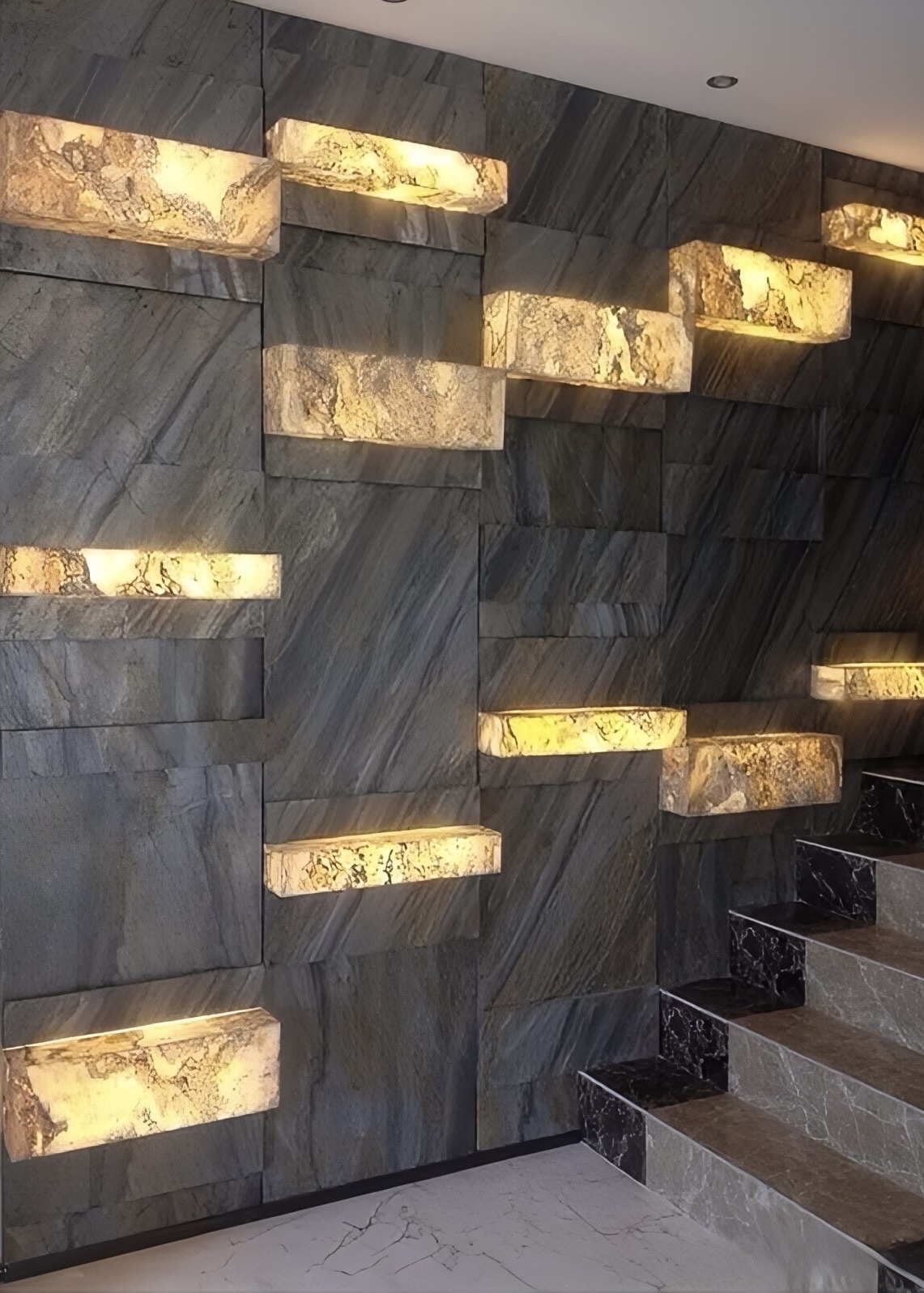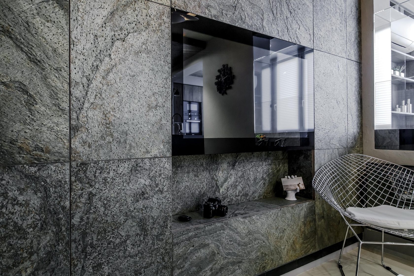 Благодаря технологии расщепления горных пород, каменный шпон представляет собой тончайшие пласты натурального камня, укрепленные стекловолокном и полимерными смолами. Наклеенные на гибкую основу, эти слои образуют прочный материал, обладающий аутентичной каменной фактурой и фантастической легкостью.